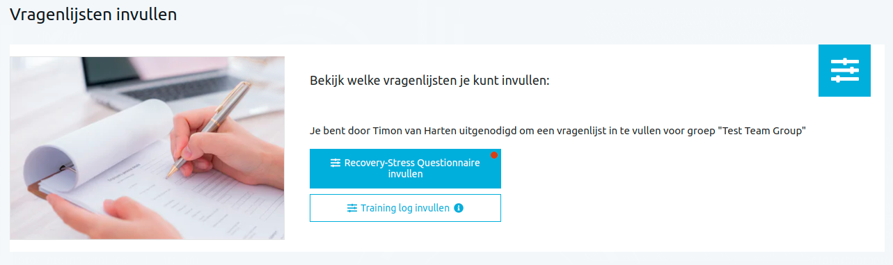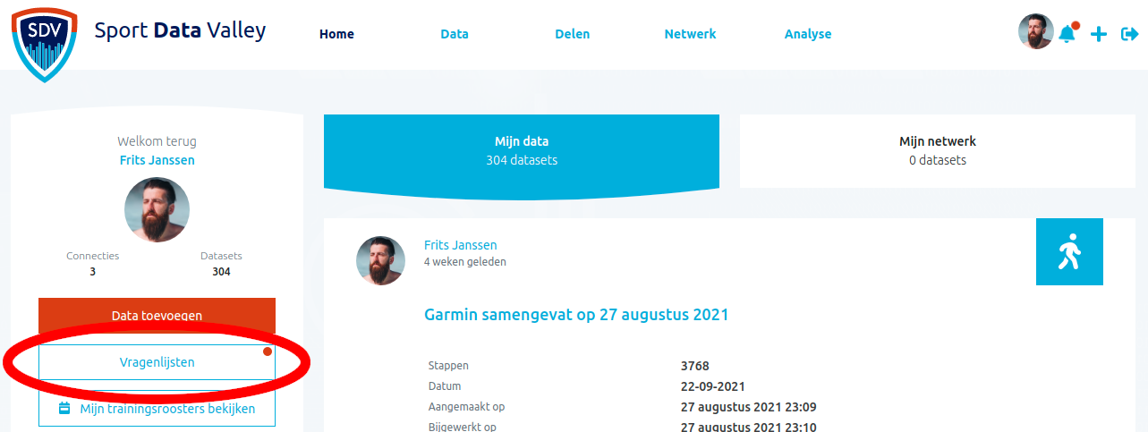 To fill in questionnaires that a coach/researcher sent you, first go to your Home page.